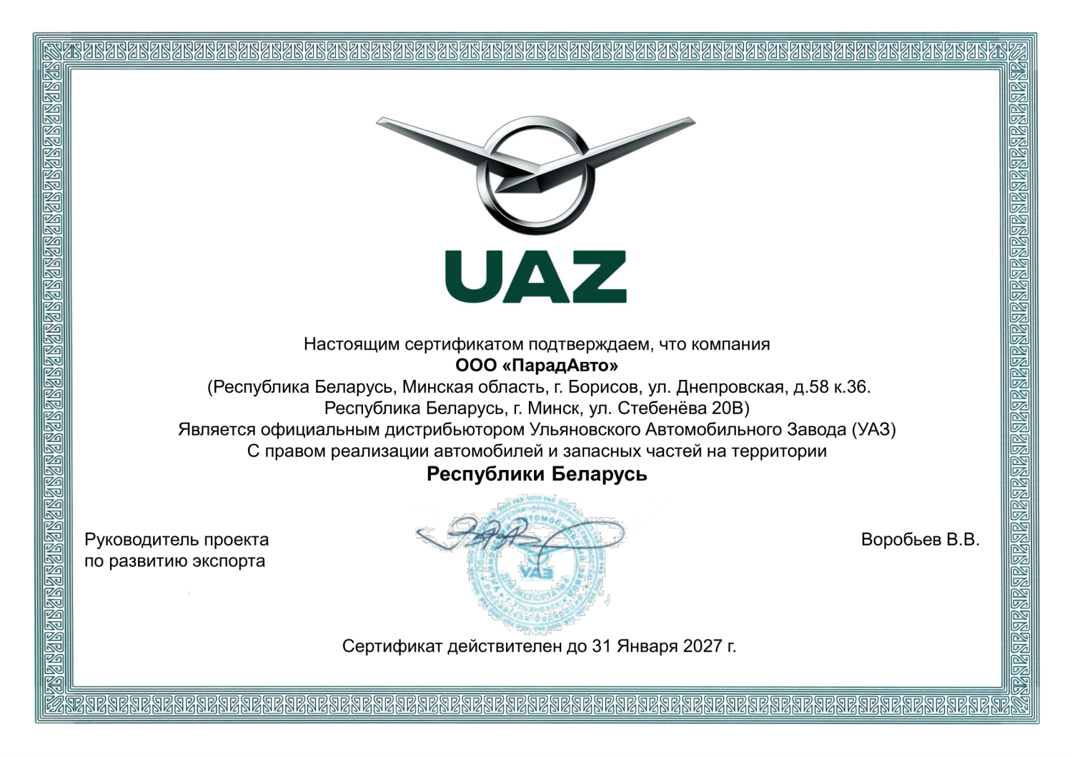 Официальный дистрибьютер УАЗ